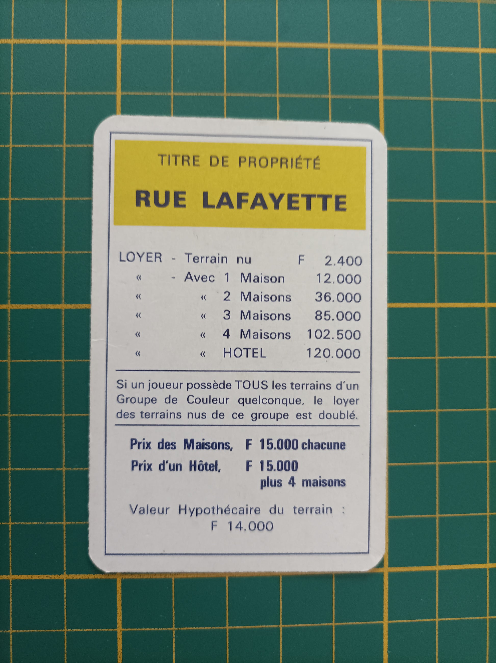 Carte propriété rue Lafayette pièce détachée jeu de société Monopoly Miro Meccano #E40